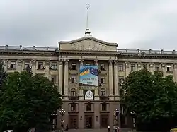 - Flaget for den ukrainske socialistiske sovjetrepublik og dens 14 andre republikker samt de socialistiske lande i Østeuropa og i udlandet [nb 1]