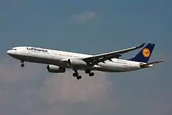![]() Lufthansa A330-300 i landingskonfiguration under indflyvning til Flughafen Frankfurt Main i 2010 | |
