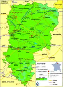 Soissons og Chateau Thierry. Departementet har navn efter floden Aisne.