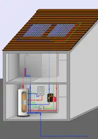 - Solvarmeanlæg med stratificeret varmtvandsbeholder med lukket vandkredsløb og aflæsning af mange aktuelle parametre: solar.webseiten.cc: Live-Daten Holzhausen