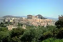 Akropolis er i dag en af verdens mest kendte ruiner. I gamle dage var Akropolis en landsby og ikke en kæmpe ruin. Landsbyen hed Thegos. Den lå i hovedstaden Athen. Grunden til at der ligger en landsby i en by er, at nogen fra Athen ville bo for sig selv.