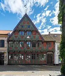 På torvets sydside står det fredede bindingsværkshus Den Borchske Gård fra 1595.[1]