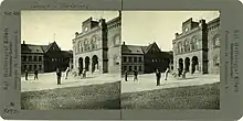 Stereoskopisk foto af Peter Elfelt, hvor både rådhuset og Borchs gård ses