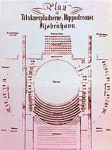 Plan af Tilskuerpladserne i Hippodromet i Kjøbenhavn.