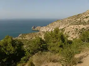 kan nævnes sandaractræ, (Tetraclinis articulata) , Aleppofyr, den mastikstræ, vilde oliven, johannesbrødtræ, kermeseg, eg, dværgpalme og jujube . Mellem klipper og sten vokser buske og græs, der giver en række forskellige levesteder til vilde dyr.[3]