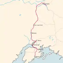 | Tidl. sporvidde | 914 mm (den tidligere Tanana Valley Railroad) |