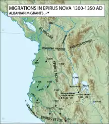 Den stadige krigsførelse i Albanien førte til fattigdom og hungersnød. I begyndelsen af 1300-tallet havde mange albanere forladt deres vanskeligt stillede fædreland og var udvandret syd på til bjergene i Epirus og videre til græske byer. Albanske landflygtige byggede også samfund i det sydlige Italien og på Sicilien.