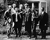 Le Groupe de l'Abbaye. Førte række: Charles Vildrac, René Arcos, Albert Gleizes, Barzun, Alexandre Mercereau. Anden række: Georges Duhamel, Berthold Mahn, d'Otémar