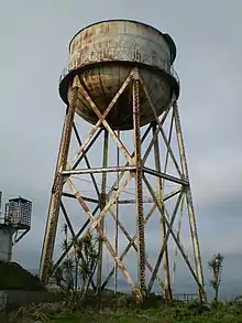 Tårnet er den højeste bygning på øen (28,7 meter) med et rumfang på 946,3 kubikmeter. Vandet blev brugt til drikkevand, vand til brandslukning,[3][7][8] og vand til øens vaskeri. Under Besættelsen af Alcatraz blev vandtårnet overmalet med graffiti af indianere, og det er siden blevet et kulturelt vartegn.[3][9] Graffiti-bemalingen omfattede bl.a. ordene "free Indian land -- Indians welcome".[7]