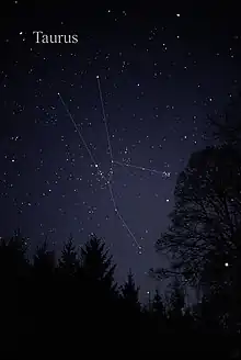 Aldebaran er den klareste stjerne i stjernebilledet Tyren (markeret i midten)
