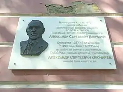 ![]() Mindeplade for Aleksandr Kljutjarjov i Kasan | |