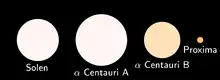 Hvor A og B stjernerne i systemet minder meget om vor egen Sol, er Proxima Centauri en rød dværg, der er koldere og langt mindre end vor Sol.