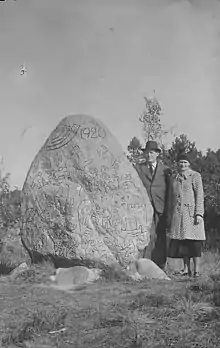 - Informationstavle ved Historiens Sten ved Kronhede Forsamlingshus.