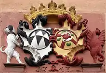 Alliancevåben for Wambolt von Umstadt / von Kesselstatt på Wambolter Hof i Bensheim i Hessen i Tyskland
