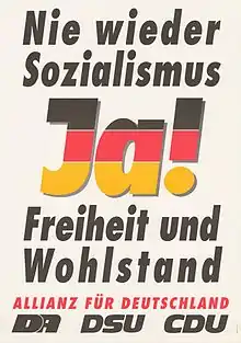 CDU i Vesttyskland under Helmut Kohls ledelse spillede en væsentlig rolle for oprettelsen af valgforbundet i DDR. Det gik ind for en tysk genforening og genopprettelse af de gamle delstater.