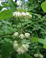 Blomsterne er samlet i overhængende klaser. De enkelte blomster er hvide og klokkeformede, og de har en behagelig duft. Frugterne er oppustede bælge med hårde nødder i. Frøene modner godt og spirer villigt i Danmark.
