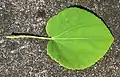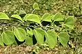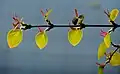Knopperne er modsatte eller let forskudte, krumme og røde. Ved enden af skuddet sidder to knopper, som ligner en krabbeklo. Bladene er hjerteformede med klart røde stilke og grovtakket rand. I udspring er de rødlige, men snart efter bliver oversiden blågrøn, mens undersiden er lysere. Høstfarven er gul til lyserød og samtidigt dufter løvet af kanel og karamel. Bladenes høstfarve er klart smukkest på sur bund.