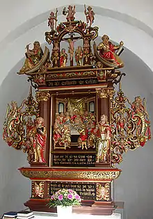 Altertavle betegner den udsmykkede overbygning til et alterbord. I Danmark kendt siden Middelalderen, ofte med smukke billedskærerarbejder. Malede altertavler ses også ofte.