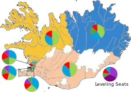 | Reykjavík Nord valgkreds | Reykjavík Syd valgkreds | Sydvestre valgkreds | Nordvestre valgkreds | Nordøstre valgkreds | Søndre valgkreds |