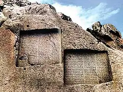I et øst-vestvendt bjergpas i ca. 2.000 m højde og ca. 10 km syd for Hamadan findes en gammel, tresproget inskription (på nyelamittisk, nybabylonisk og oldpersisk). Den er indhugget på en lodret klippeside efter ordre af kong Dareios den Store og kong Xerxes I, dvs. før 465 f.Kr., og den kaldes Ganj-Naúma (= "skattens bog").