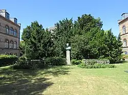 ![]() Buste af L.P. Holmblad i gården på Amager Hospital. | |