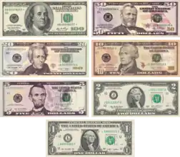 | Ofte brugte | $1, $5, $10, $20, $100 |
