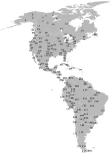 Formodentlig var Leif den Lykkelige den første europæer, som opdagede og gik i land i Amerika omkring år 1000 i et område, som han kaldte Vinland og som senere blev kaldt Newfoundland. Hans ekspeditioner resulterede i flere bosætninger, men ingen som blev varige, og de fik således ingen betydning for den eksisterende befolkning på kontinentet.[22] Mens man teknisk set refererer til tiden før Christoffer Columbus' sørejser i tiden 1492 til 1504, indebærer "præcolumbiansk tid" i praksis almindeligvis historien om de amerikanske oprindelige folks kulturer frem til europæerne enten erobrede eller betydeligt påvirkede dem, selv om dette skete årtier eller endda århundreder efter Columbus' første landgang.[23] "Præcolumbiansk" benyttes især ofte i en kontekst om de store civilisationer i Amerika forud for kontakt, særlig de mesoamerikanske (olmeker, tolteker, teotihuacáner, zapoteker, mixteker, azteker og mayaer) og folkene i Andesbjergene (inkaer, mocher, muiskaer og kañarier).