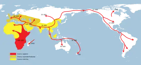 - Udstrakt indvandring og bosættelse i Nord- og Sydamerika ved slutningen af sidste istid, engang for mellem 16.000–13.000 år siden.
