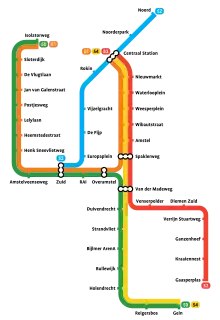 Noord - Noorderpark - Amsterdam Centraal - Rokin - Vijzelgracht - Ceintuurbaan - RAI NS / Europaplein - Zuid NS | |