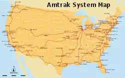 Amtrak har næsten 19.000 ansatte og kører passagertog på 34.000 kilometer spor, som primært er ejet af jernbanegodsselskaber, der forbinder 500 destinationer i 46 stater[6] og tre canadiske provinser. I regnskabsåret 2008 havde Amtrak 28,7 millioner passagerer, og det var sjette år i træk med et rekordhøjt antal rejsende.[6][7] På trods af nylig vækst, er USA stadig et af de industrialiserede lande i verden, med den laveste benyttelsesgrad af intercitytog pr. indbygger.