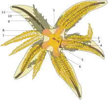 - Kranial nerverne: N. olfactorius, n. opticus, n. oculomotorius, n. trochlearis, n. trigeminus, n. abducens, n. facialis, n. vestibulocochlearis, n. glossopharyngeus, n. vagus, n. accessorius og n. hypoglossus