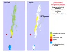 Den samlede befolkning var på ca. 10.000 i 1779. Briterne etablerede i 1857 en straffekoloni ved Port Blair, og på det tidspunkt var den oprindelige befolkning faldet til ca. det halve.[3] Efter etablering af straffekolonien var der en kraftig stigning i antallet af indere og karen (folkeslag fra Burma). Antallet af de oprindelig folk gik kraftigt tilbage i samme periode, blandt andet pga. de sygdomme indvandrerne bragte med sig. I dag omfatter den oprindelige befolkning ca. 400 mennesker.[3]