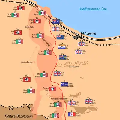 I juli 1942 var den italiensk-tyske Panzer Armee Afrika efter sejren i Slaget ved Gazala trængt langt ind i Egypten og truede den britiske kontrol over Suez-kanalen. General Auchinleck havde trukket 8. arme tilbage til 80 kilometer fra Alexandria til Qattara-sænkningen 65 kilometer fra kysten. Det gav forsvarerne en kortere front og sikre flanker, da kampvogne ikke kunne trænge gennem Qattara-sænkningen. Her blev aksestyrkerne stoppet i juli under det Første slag om el-Alamein.