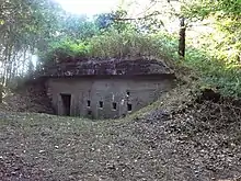 På stedet findes 3 bevarede bunkere og et stort hul, hvor der via en jernbane kunne placeres en 24 cm kanon.