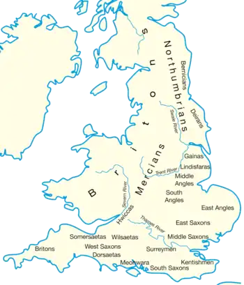 Det er muligt at Bedas skillelinje bare er trukket ud fra navnene på rigerne (Essex – østsaksere, Wessex – vestsaksere osv.), men oprindelig er der utvivlsomt tale om forskellige folkegrupper. På et tidligt tidspunkt, muligvis allerede før den saksiske hovedinvasion, var de to grupper vokset sammen til en.