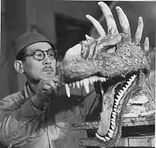 Konstruktionen af Anguirus' hoved til filmen Godzilla Raids Again (1955)