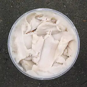 ![]() Vådrenderet svinefedt, fra en fedtryg fra et svin. | |