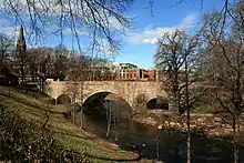 Den første bro her blev bygget i 1874. Det var en træbro. I 1926 blev denne erstattet af en ny bro i sten.