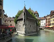 Det gamle fængsel i Annecy ligger på en ø i floden Thiou. (August 2007)