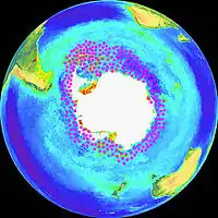 Den nordlige grænse for det sydlige ocean, der består af dele af det Atlantiske og Indiske Ocean og af Stillehavet, defineres mere eller mindre af den antarktiske strøm. I strømmen, der omkranser jorden, synker det kolde antarktiske overfladevand ned under de varmere subantarktiske vande. Strømmen løber fra omkring 55° syd til kontinentet, det sydlige ocean dækker hermed 32 millioner kvadratkilometer. Det er 65 gange Nordsøens areal. I vintersæsonen dækkes over tre fjerdedele af Sydhavets areal af is, om sommeren er et areal på 24 millioner kvadratkilometer isfrit. vandtemperaturen svinger imellem -1,3 °C og 3 °C.