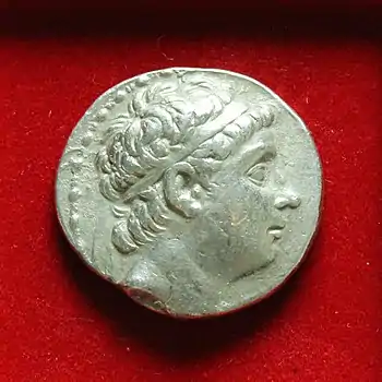 Mønt (Tetradrakme) af en ung Antiochos 3. den Store, præget i Antioch.