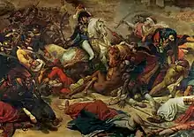 Her udnyttede han ret for første gang i fransk kunst Orienten i dens maleriske fremmedartede karakter og åbnede således for en rig kilde. Slaget ved Abukir (1806, museet i Versailles) og det i malerisk henseende betydelige Napoleon på slagmarken ved Eylau (Louvre 1808) vakte ligeledes stort bifald. Hermed var Gros’s kulmination nået. Hans kunst, der i så høj gradbyggede på Davids grundsætninger, var ved hans sjældne skaberkraft, hans virkelighedssans, der formåede at gribe det momentane, fastholde det karakteristiske og end ikke veg tilbage for det hæslig frastødende (de pestsyge), brudt ud af de gamle rammer. Den stod med de brede penselstrøg og den friske klare farve (i Italien havde han med iver studeret Peter Paul Rubens og Antoon van Dyck) betydelig over den davidske skoles øvrige ydelser i malerisk henseende.