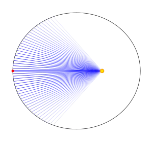 Figuren viser et himmellegemes elliptiske bane omkring Solen (gul cirkel). I punktet markeret med rød farve er legemets afstand fra Solen størst, det betegnes banens aphelium. Aphelafstanden er markeret med en tyk blå streg. De øvrige, tynde blå streger, der er afsat med tidsmellemrum på 1/100 af omløbstiden, viser, at afstanden til alle andre tidspunkter end tiden for aphelpassage, er mindre.