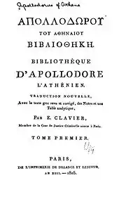 ![]() Forsiden til Apollodorros’ Bibliotheke | |