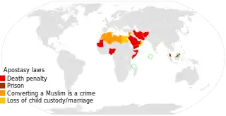 Rødt: dødsstraf, brunt: fængselsstraf, fratagelse af rettigheder til ægteskab og børn, gul: anden straf.