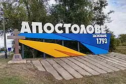 hør); russisk: Апо́столово, tr. Apóstolovo) er en by i den sydlige del af Ukraine med 13.069 (2022)[1] indbyggere.