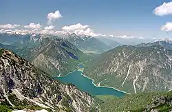 Plansee set fra sydøst. Archbachs udspring ses i midten