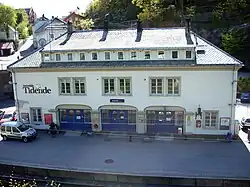 NSB's arkitekt Paul Armin Due tegnede en række udkast til stationsbygningen, ligesom han også tegnede de fleste andre bygninger på stationen. Stationsbygningen blev præget af jugendstil og rummede ventesal, ekspedition og kontor samt bolig på førstesalen. Stationen blev desuden udstyret med pakhus, udhus, remiser, værksteder, drejeskive og forsyning med kul og vand. Stationen stod færdig i 1908, idet lokomotivremisen først var færdig i 1910. Efterfølgende viste det sig, at stationsbygningen var for dårligt funderet, og den blev revet og erstattet af en ny i 1929-1930. Den nye bygning blev tegnet af arkitekten Gudmund Hoel fra NSB Arkitektkontor.