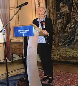 Arlette Andersen under en ceremoni på den franske ambassade 2016 | |
