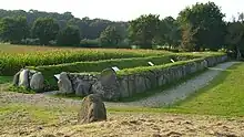 De seks (oprindelig syv) langhøje er oprettet i bondestenalderen mellem 3500 og 3000 f.Kr. Langhøjenes længde svinger mellem 10 og 20 meter, mens højden er på cirka 1 meter. I de græsbevoksede langdysser ses endnu enkelte randsten. I 1690'erne skal der være fundet lerkar i højene. Ligesom langhøjen stammer også rundhøjen fra bondestenalderen. Rundhøjen er cirka 20 meter i diameter. I midten ses et hul, hvor gravkammeret har været.